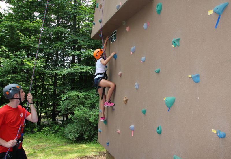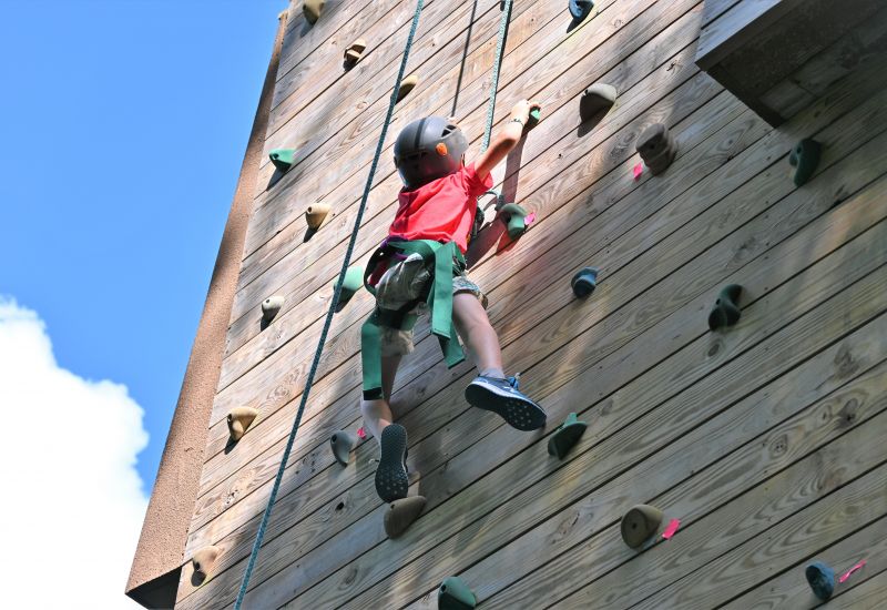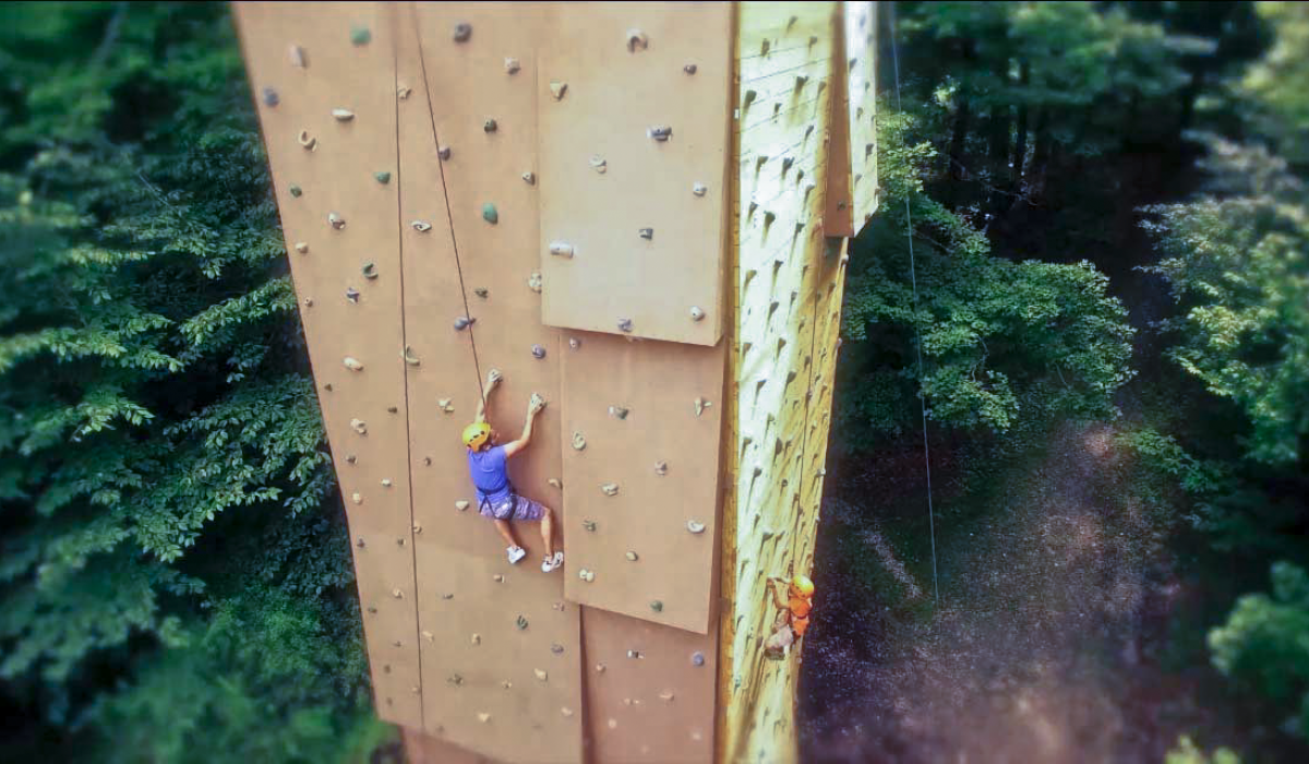 * Rock Climb on the 32-foot high three-sided climbing tower.
