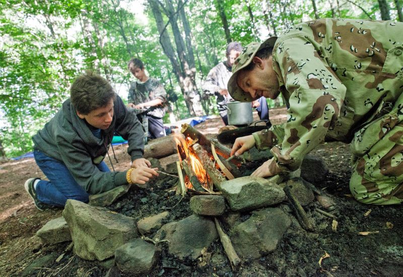 * Join the Survival Clinic and learn the ancient skills of survival - shelter, water, fire, food.