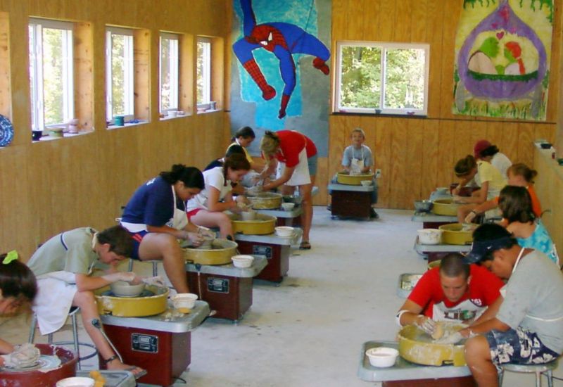 The pottery and ceramics programs are very popular, and like Arts & Crafts, they operate daily. The pottery program features 15 pottery wheels on Junior Campus and 9 wheels on Teen Campus. The ceramics program features large studios that provide plenty of space for campers who enjoy clay work, sculpting, glazing and firing. There are three kilns on Junior Campus and one on Teen Campus.