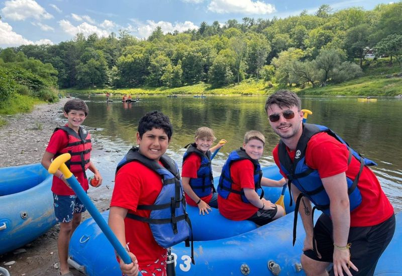 Rafting Trips take place on the scenic Delaware River in northern Wayne County. These trips are really exciting and the natural surroundings are beautiful. The Delaware River is only 45 minutes from camp. To be eligible to participate, you must pass Cayuga’s deep water swim test and boating test to prove you’re a good swimmer and know how to properly paddle a raft. The trip director will review the river safety rules and trip procedures prior to departing camp. To attend this trip, simply tell your division director or sign-up during the elective sign-up period in the morning. Advance registration is not necessary. Rafting trips are not included in the tuition. Rafting trips are scheduled weekly. For trip dates, go to Calendar of Events.