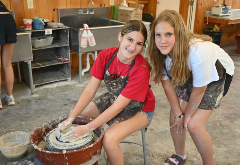 The pottery and ceramics programs are very popular, and like Arts & Crafts, they operate daily. The pottery program features 15 pottery wheels on Junior Campus and 9 wheels on Teen Campus. The ceramics program features large studios that provide plenty of space for campers who enjoy clay work, sculpting, glazing and firing. There are three kilns on Junior Campus and one on Teen Campus.