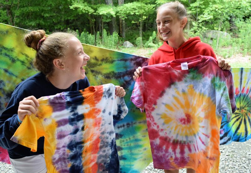 The Arts & Crafts program is all-encompassing and includes t-shirt creations (tie dyeing, air brushing, fabric painting, silk screening), painting (water color & acrylics), drawing, sketching (charcoal pencils), jewelry making, beading, basket weaving, lanyards & braiding, leather crafts, macramé, paper mache & plaster projects, wood projects, copper enameling, block printing, needle craft, mask making, decoupage, shrinky dinks, model rocketry, and nature crafts. The Arts & Crafts is an elective activity for campers entering 5th grade and higher, and is offered every period every day. Our Junior Division (4th grade and lower) is scheduled Arts & Crafts, along with pottery and ceramics, about four days a week.
