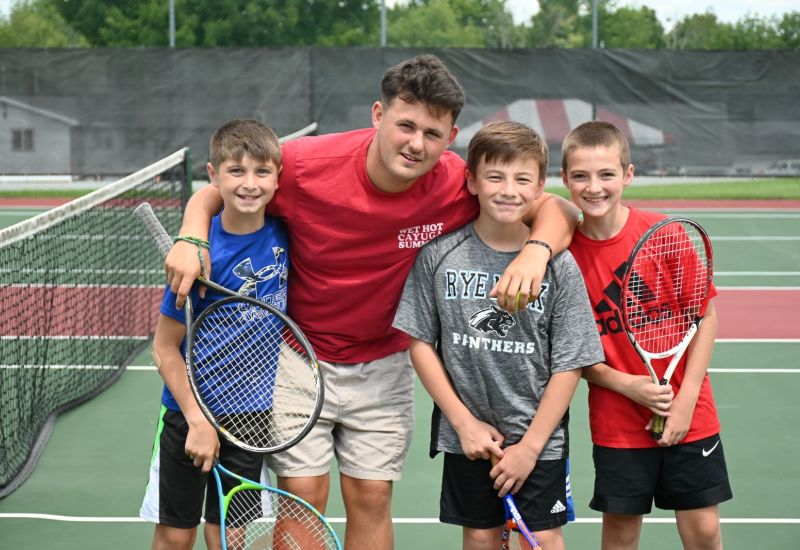 Camp Cayuga features a top-notch tennis program in a traditional camp setting, providing campers a well-rounded activity program, with the opportunity to concentrate on tennis. Tennis lessons are patient and thorough, and taught at all skill levels from beginner to advanced. Instructors are assigned 2 to 5 campers per lesson. The lesson is 50-minutes in length, and includes a mix of instruction and recreation.