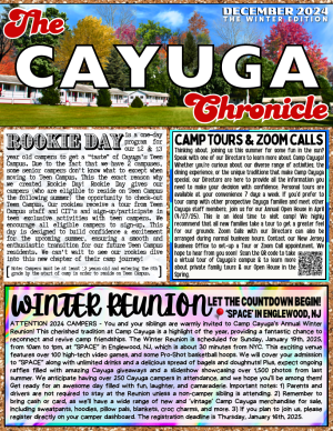 Cayuga Newsletters keep you apprised of what’s happening in ‘Cayugaland’. Campers receive a notification via email each time we post a newsletter. To read our most recent newsletters, simply click the download button. Be sure to check-out Cayuga’s Facebook page and Instagram for quick updates and more photographs.